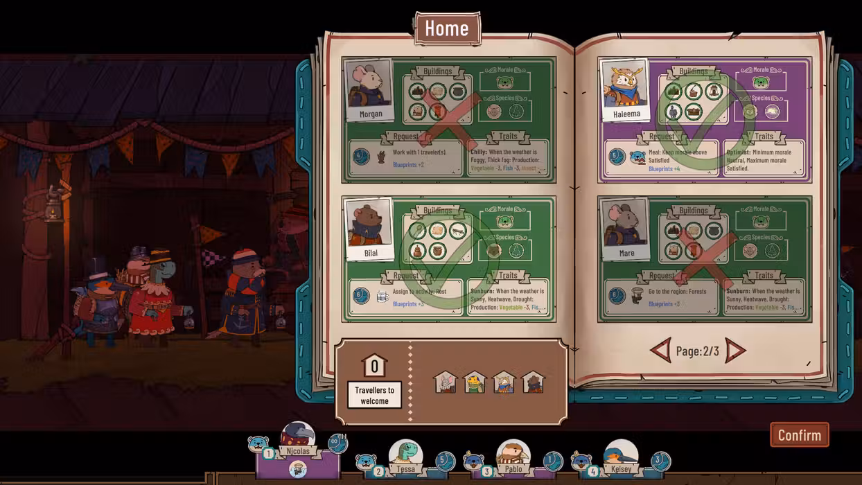 The keeper regularly welcomes anthropomorphic travelers to the hamlet. Each traveler is unique and has their own knowledge and characteristics, but also their own requests for you to meet. Take this information into account to build a sustainable and habitable community.
