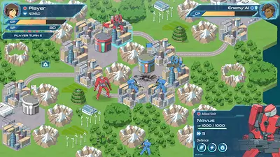 Choose from four commanders, each representing a different faction and bringing with them their own unique power, traits and play style. Think tactically as you move your units, clash with rival mecha, and watch the outcome in dramatic battle sequences inspired by 90s Japanese animation.