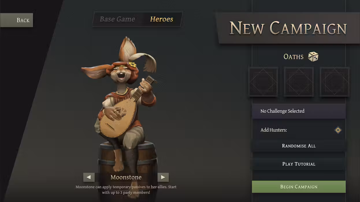 Moonstone must be chosen as your starter character, but unique to her playstyle, you will have the option to immediately start your campaign with up to two more party members.