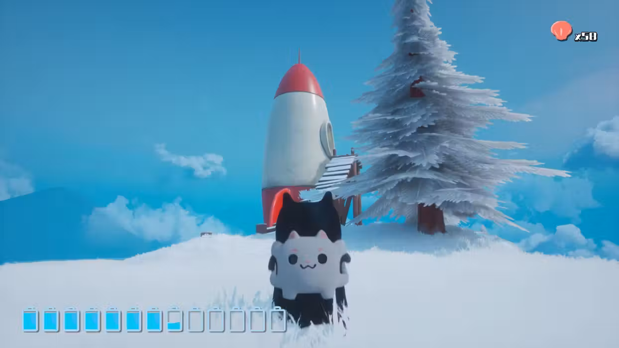 Wading through thick snow is a right pain in the tail. But our kitty cat's not alone! With their backpack, a few rocket researchers, and a signpost or two, that rocket's finally within reach! Hurrah!