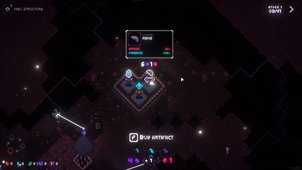 Every run starts with your crystal and a supply of energy. Then it's up to you how to fight the darkness. Do you steadily expand, clearing the darkness, harvesting its energy, and carefully deploying defenders to deal with whatever emerges from the dark? Or do you play it fast and loose, striking out to locate ancient structures and powerful artifacts hidden within?