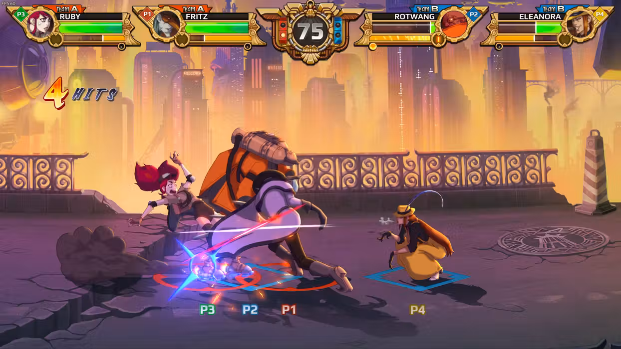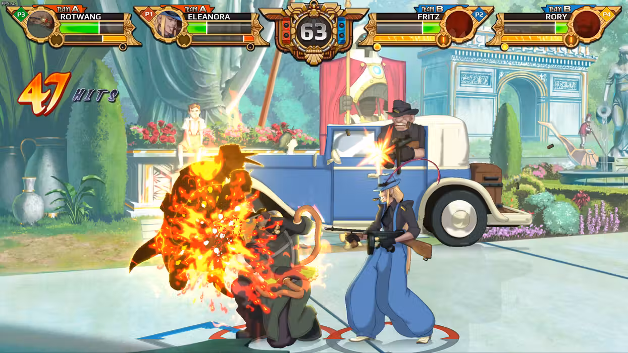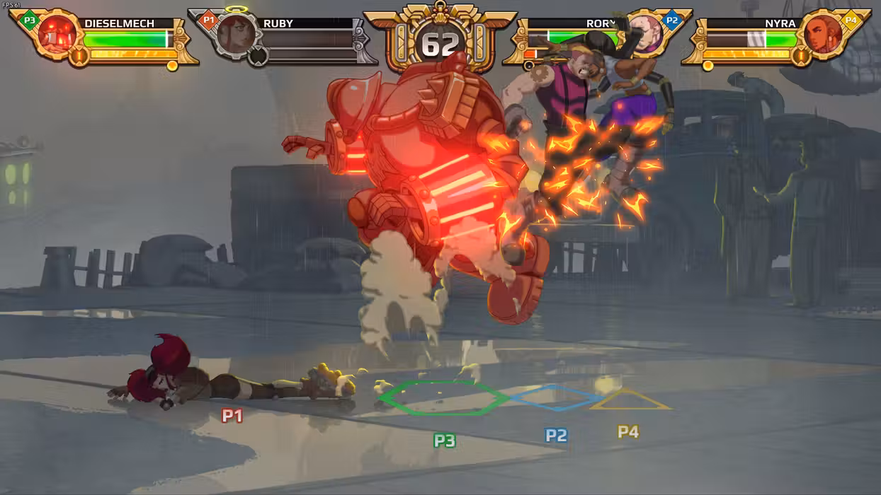 Diesel Legacy is all about embracing the teamwork and chaos of 2v2 battles in a fighting game playing field - four players divided into two teams, on the same stage, at the same time.