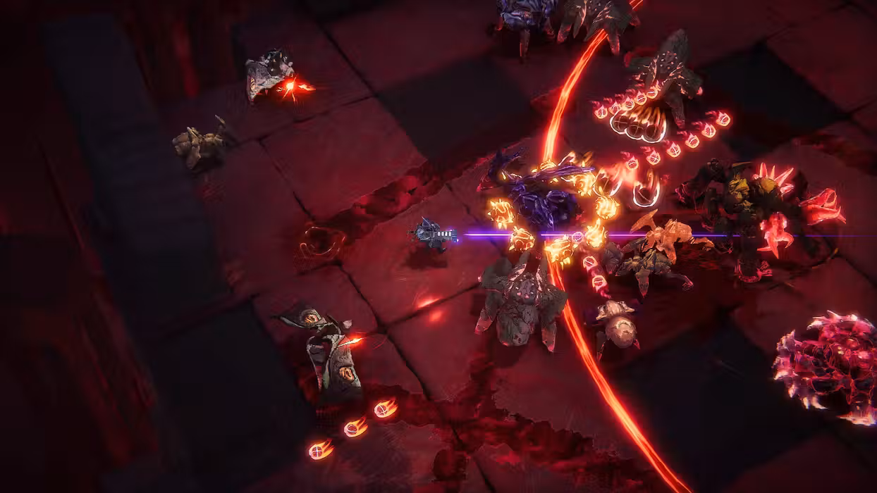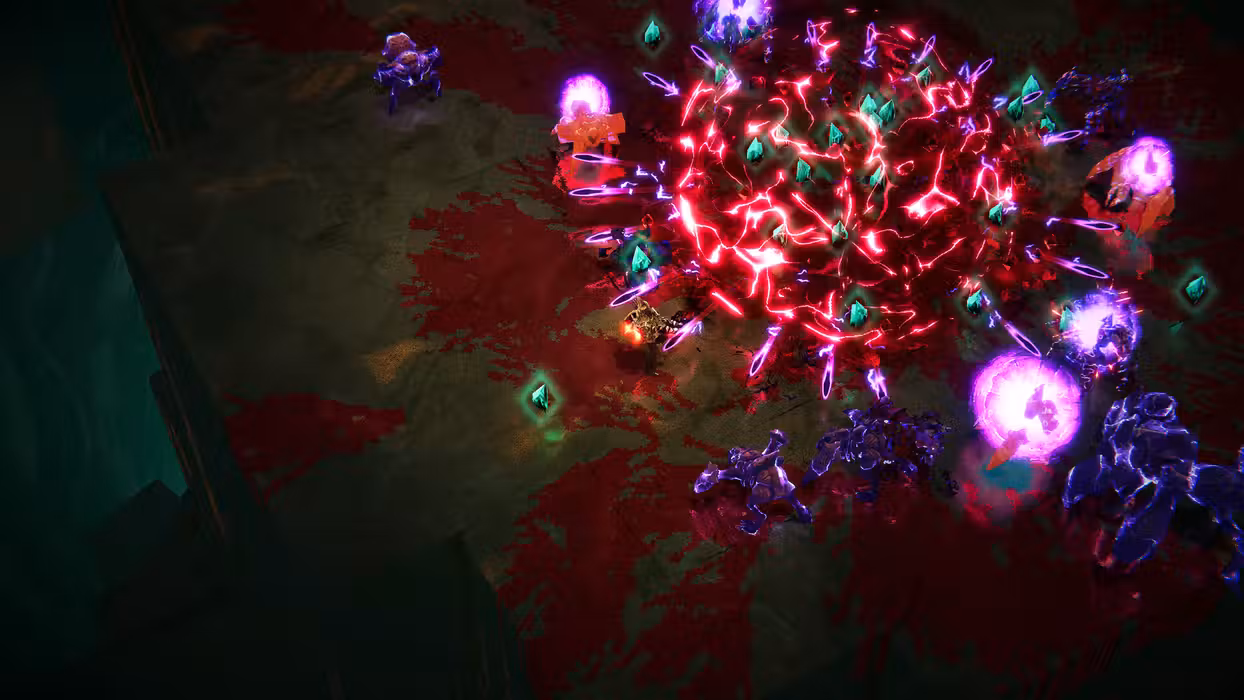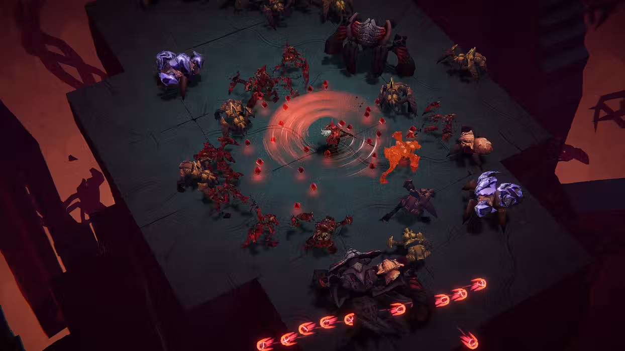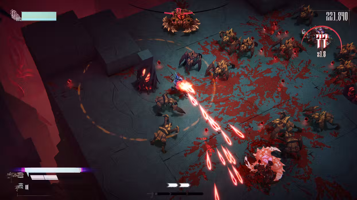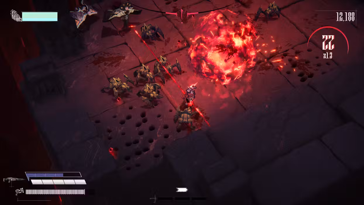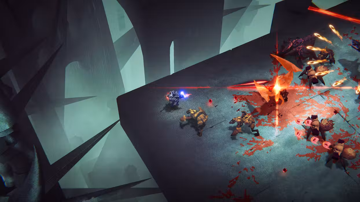 - Fast and visceral top-down, push forward combat that rewards aggression and precision