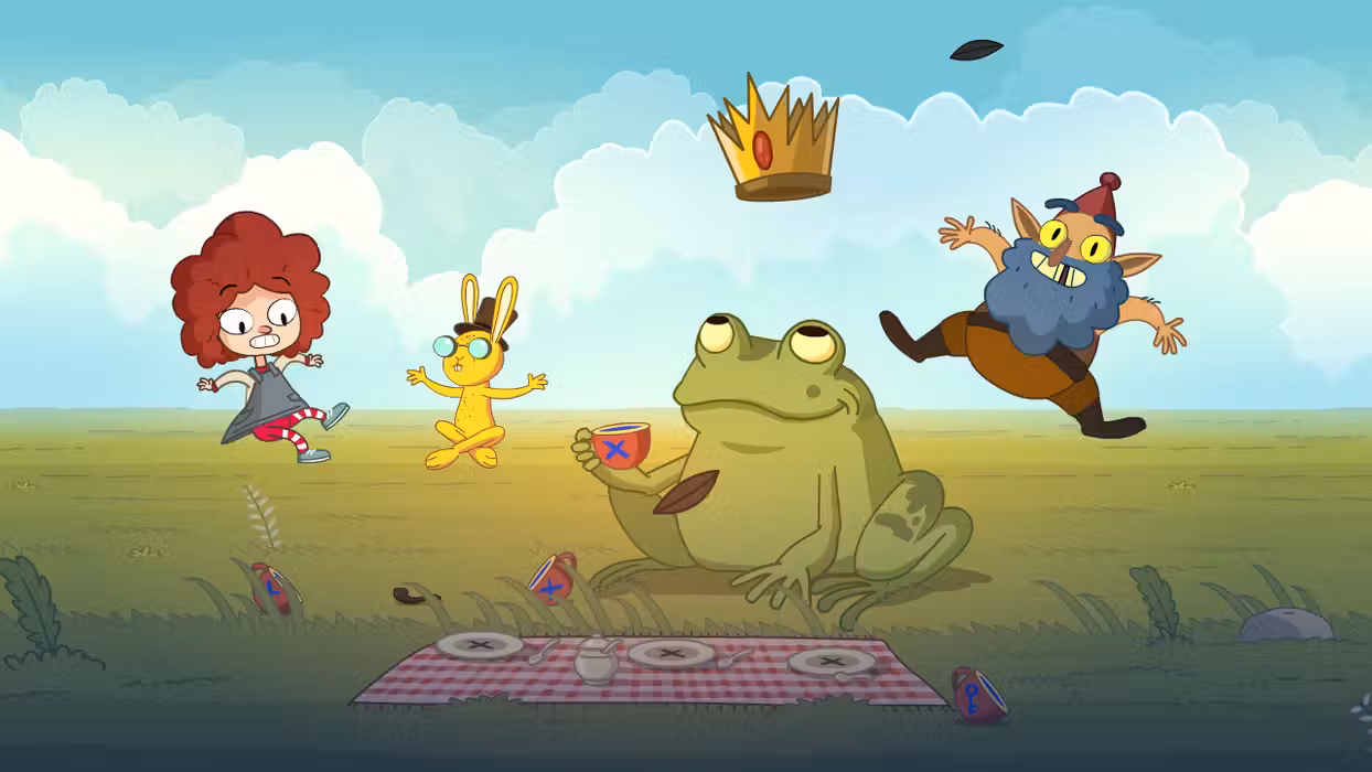 Lost in Play is a journey through childhood imagination with thoughtfully crafted puzzles and colorful characters. Play as a brother and sister duo on an adventure to find their way back home. Between reality and fantasy, the siblings explore the enchanted forest of a horned beast, start a rebellion in a goblin village, and help a team of frogs free a sword from a stone.