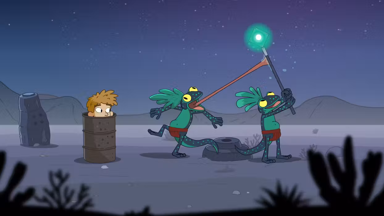 From what seems like a normal morning at home to a typical afternoon at the park, you'll soon find yourself on a whirlwind quest as you sneak into a goblin castle, explore ancient ruins, and soar atop a giant stork. Lost in Play takes you on a nostalgic roller-coaster!