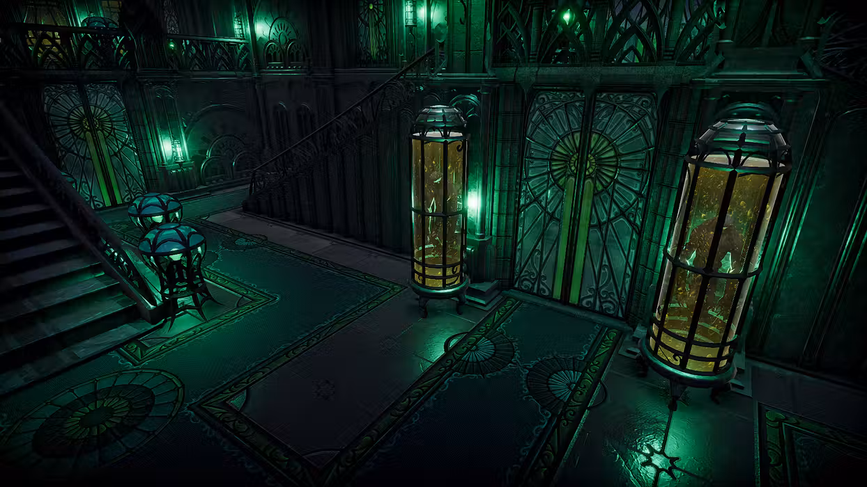 Light your breathtaking modern halls with the glow of bubbling lanterns filled with bio-luminous concoctions. Fill your halls with beautiful bronze, cured wood, and gleaming glass lined with the remnants of prized experimental monstrosities. Observe it all from the seat of your throne, towering and resplendent in stained glass decor.