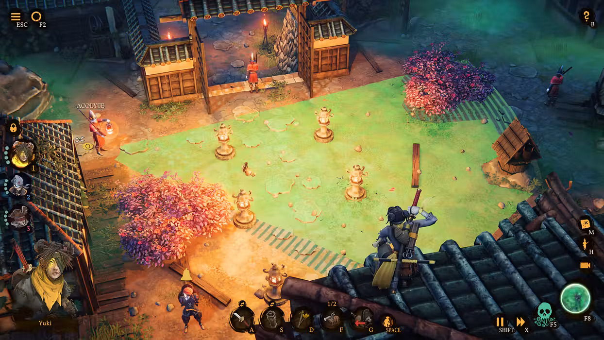 Reunite with Yuki and Kuma from Shadow Tactics: Recruit Yuki the Twilight Corsair and her little pet her tanuki Kuma from Shadow Tactics: Blades of the Shogun to your cursed crew. Always a trick up her sleeve, Yuki is a clever thief with an energetic spirit and a good heart, albeit cheeky manners. Yuki adopted Kuma after the events of Shadow Tactics and together they began traveling the world, ending up in the Lost Caribbean as cursed pirates with all-new supernatural powers. Set Yuki's new magical traps that blast foes on contact with a hail of deadly needles and command Kuma to distract enemies or lure your targets towards your strategically placed traps.