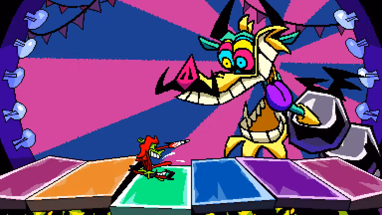ANTONBLAST is a fast-paced explosive action platformer that's all about destruction. Play as the enraged Dynamite Anton (or his cranked-out coworker Annie) and use your Mighty F’n Hammer to demolish bizarre worlds, tussle with screen-filling bosses, and steal your Spirits back from Satan!