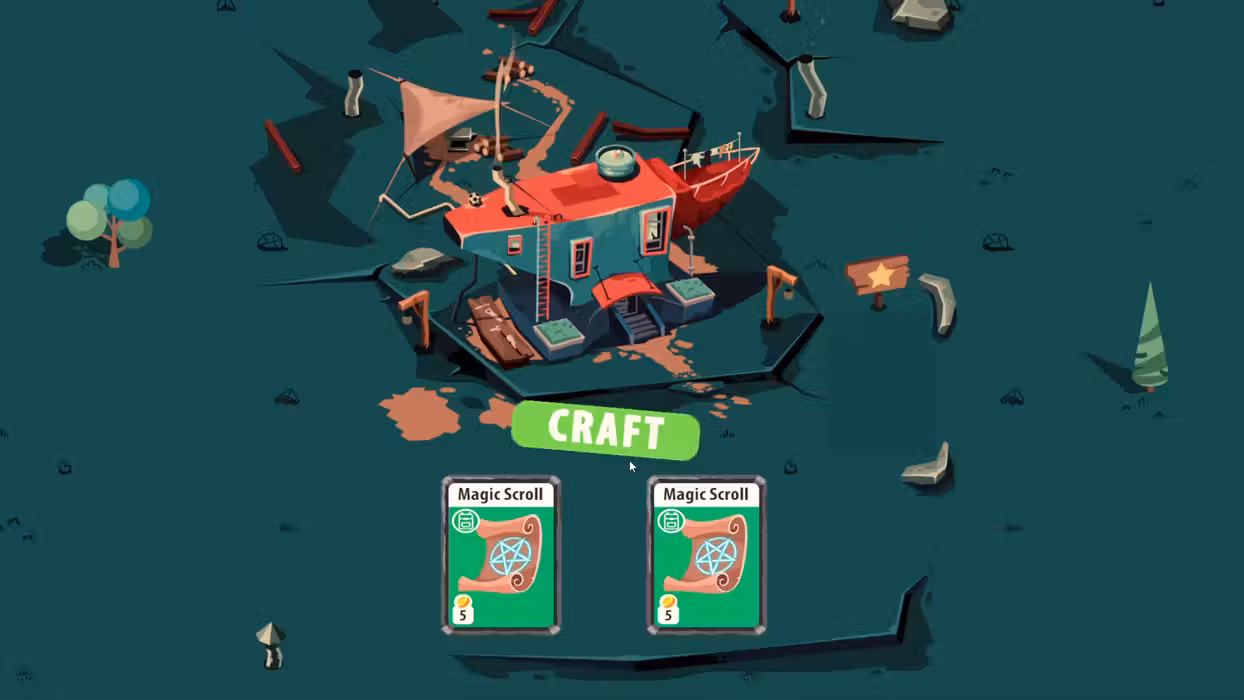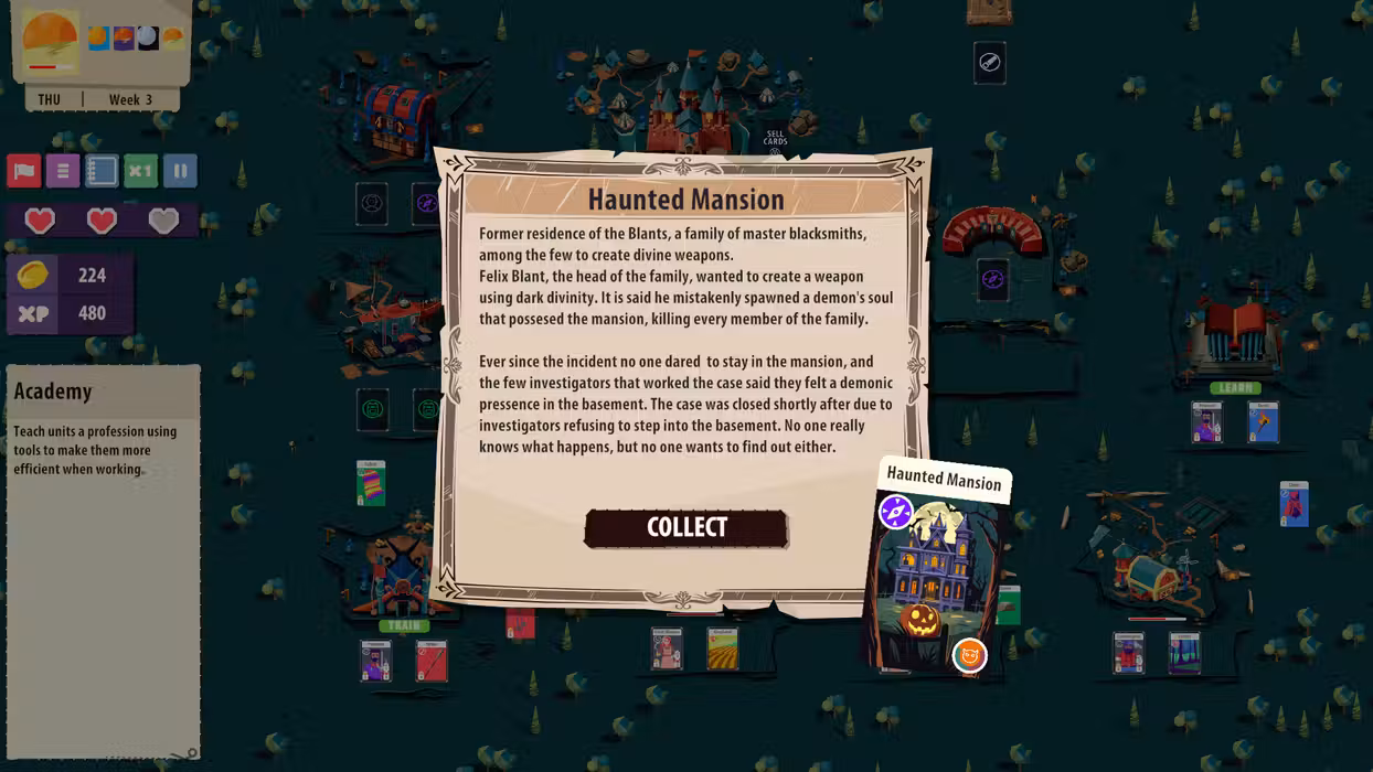 Blacksmith - Craft tools and weapons using items. Discover new cards by experimenting with different items.