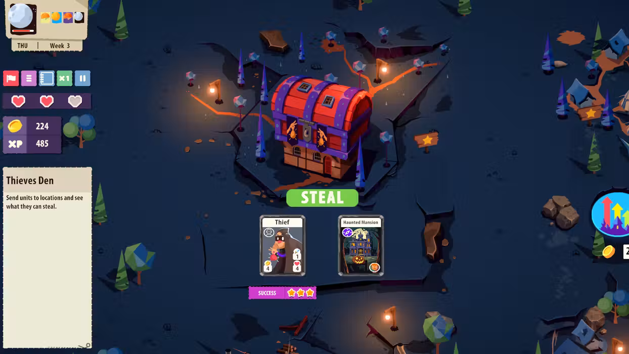 Thieves Den - Use units to steal from locations. Send a thief to a manor, town or castle to see what it gets.