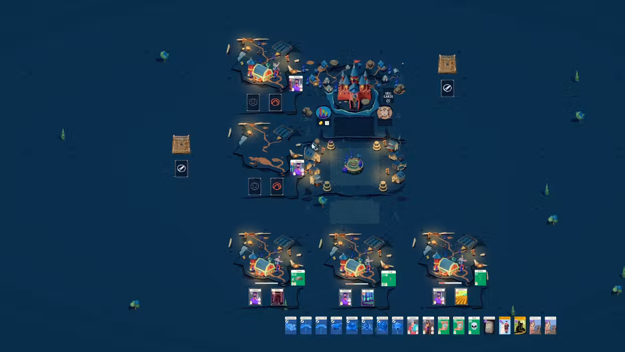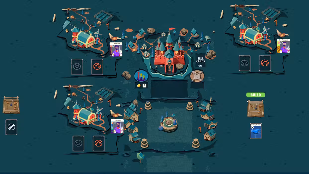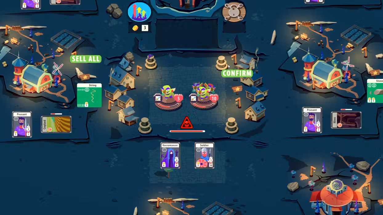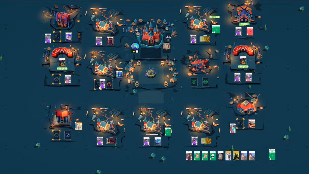 Combine cards to craft tools and weapons to create different units. Farm your lands with farmers, send an explorer to a cave, a thief to steal a mansion or soldiers to conquer a town. Manage your resources to create the best units to defeat every boss.