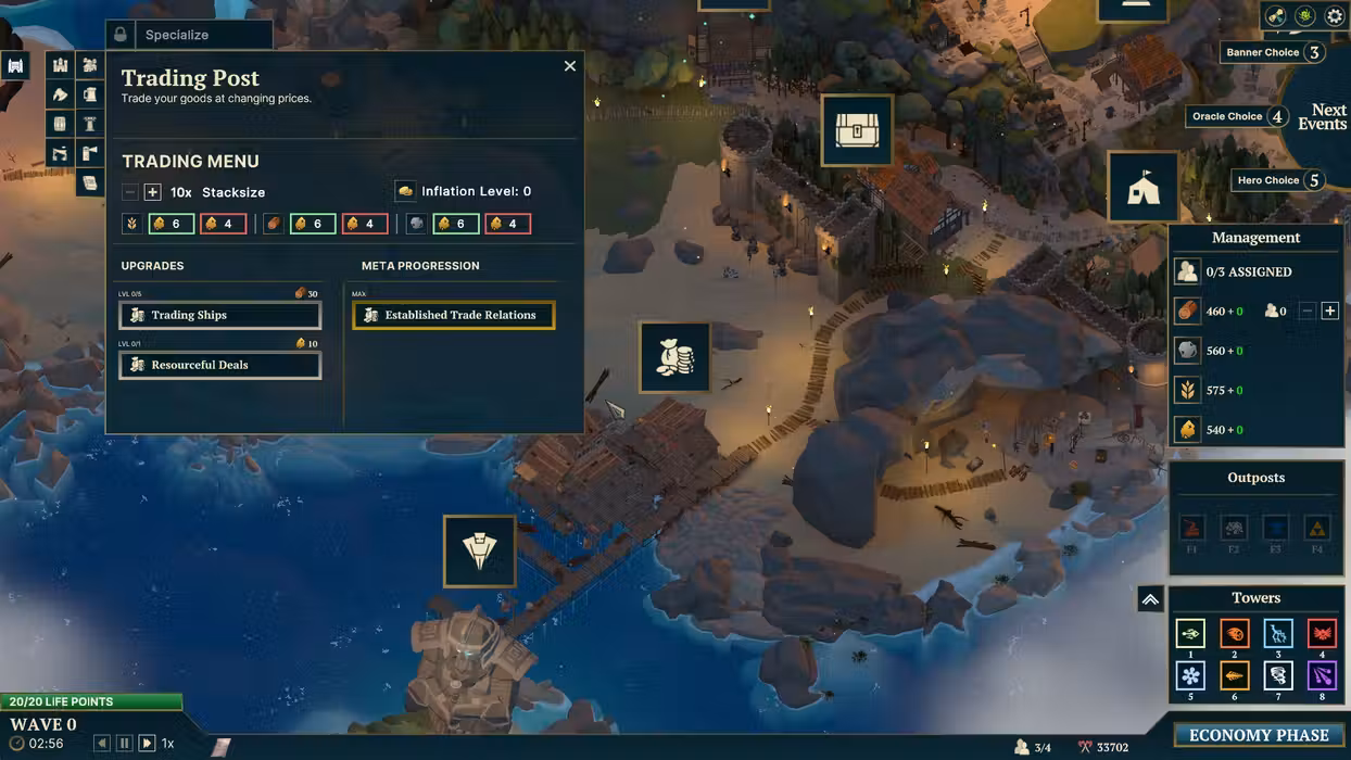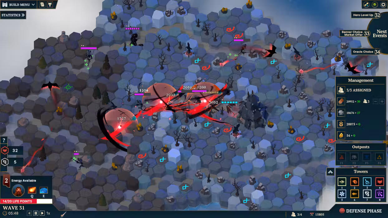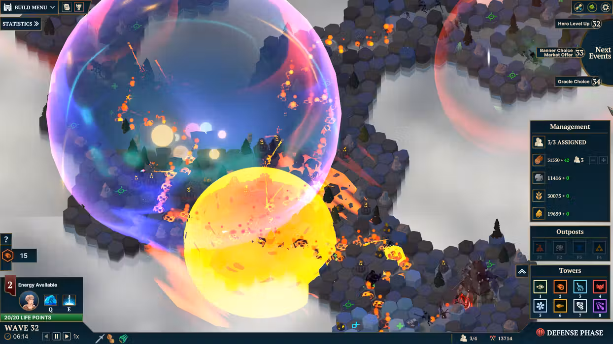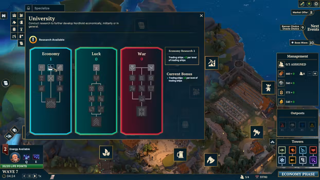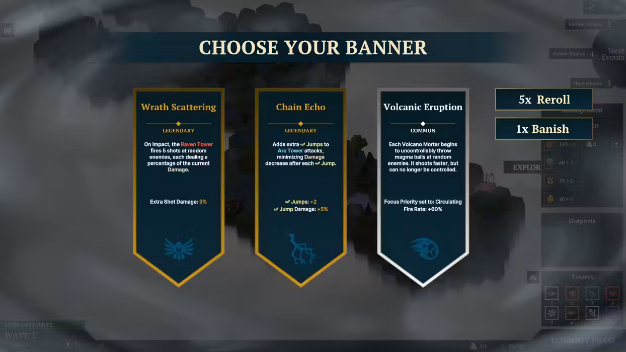 Which general should defend Nordhold? Choose from hundreds of hero combinations! Relics grant you bonuses across the board, whether for your economy or defense. The oracle always gives you a different choice, for example: 5 waves of stronger enemies, which also offer higher rewards, or 5 waves of cheaper tower construction?
