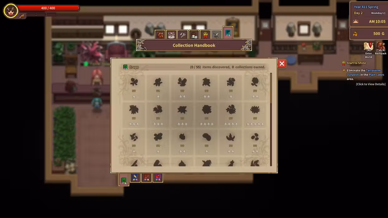 During my adventure, I have collected all kinds of seeds and tried to grow them in different ways. Tend to my crops till a harvest, then I can sell them out, use them for crafting or fulfill other villagers' requests.