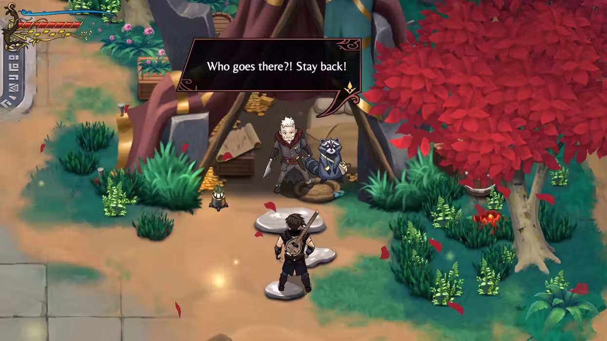 Traveler's Refrain is a dark song-casting, story-driven action RPG about one man's quest to find his long-lost love and rekindle his passion. Armed with a magical bouzouki, Traveler will face horrific abominations, challenging puzzles, and unravel the mysteries of a dark forest forbidden to all, as an ancient conflict reaches a fever pitch. It is up to the player to defy the Mecha-Goddesses of Fate and find the machine that will reunite Traveler with his long-lost love.