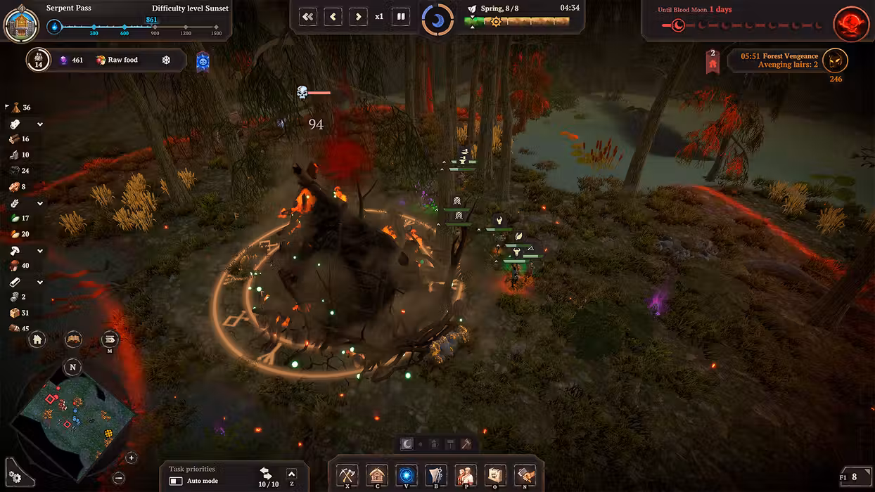 The Darkness is relentlessly devouring the lands, forcing survivors to hide in the woods, where each new day is a battle against death. You are to lead a group of those humbled by impending dread: build and develop your settlement, gather resources, and protect your people from monsters that lurk in the dark. Take care of the settlers, make them learn crafts and military skills so their next sunset is not their last. Over time, you will have to leave the lands you developed and look for the new ones... Who knows, maybe there you will find out how to repel the inevitable danger and save the world.
