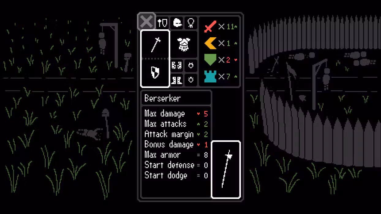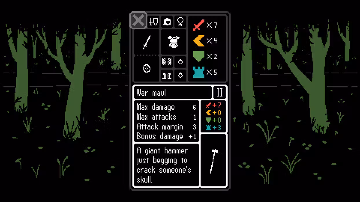 Equip powerful weapons, armor, and rings to change your tactics and tile selection for battles. Want to be a dual-wielding berserker, an evasive duelist, or a knight clad in heavy armor? With over 180 items there are interesting build choices and playstyles for every player.