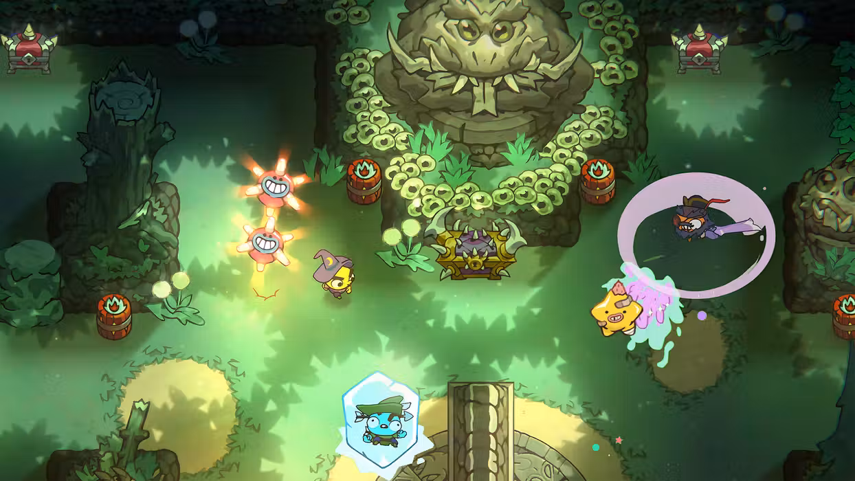 Start with basic weapons, then scavenge the battlefield for upgrades. Crack open chests for better firepower, or claim weapons from defeated foes, after all, they won’t be needing them anymore.