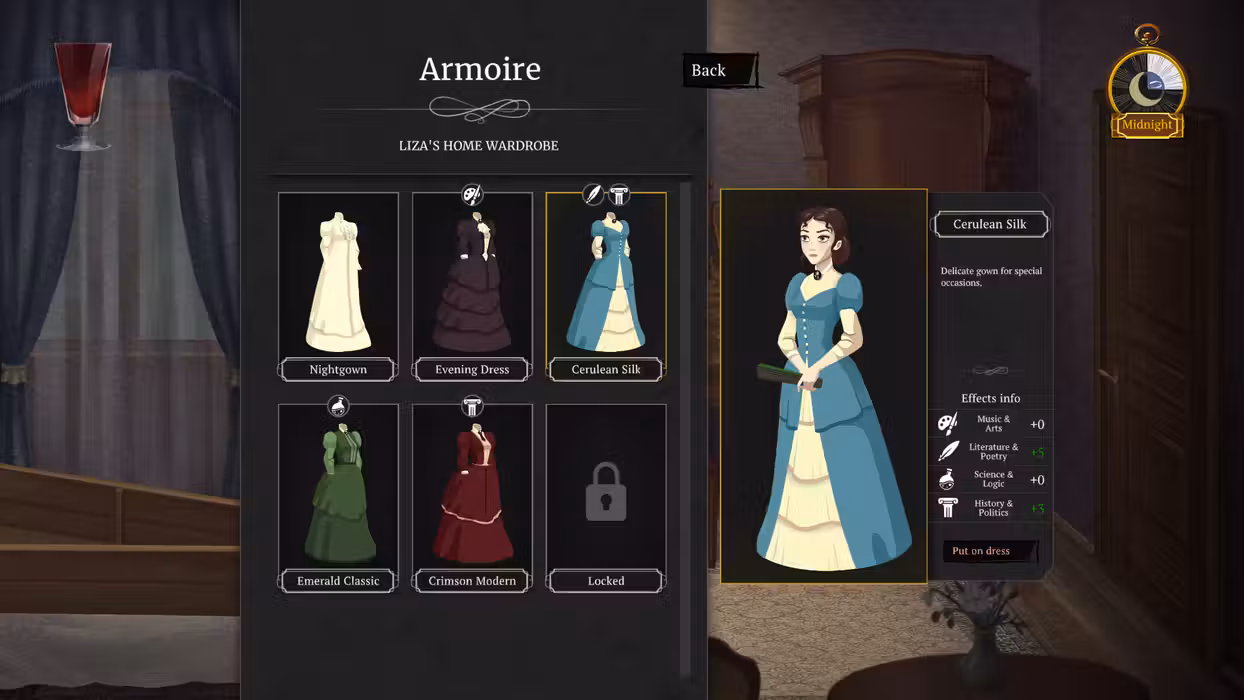 Cabernet is a 2D narrative RPG set in a 19th century Eastern European inspired world, with a modern twist. Guide Liza, a young vampire struggling with her morality and the supernatural world she has been pulled into. Beware, the taste of Cabernet is not for the faint of heart - prepare to explore themes of social conflict, alcoholism, and corruption. For 400 years the elegant Countess Orlova has ruled your new home, inhabited by humans and supernatural beings alike. As a fledgling protégé, doors have opened to an intoxicating life full to the brim with possibilities. Could your afterlife really be this easy? Use the moonlit sky wisely to plan your next feast and explore. Get to know the vampiric society and the humans who feed them. Uncover who will be useful and whose only purpose is a meal. Survive to see another night by returning home before the deadly Sunrise. Unlock vampiric powers as you are immersed in local lore, rumours, and secrets. Shift into a bat, hypnotize your meal or become invisible. Battle your hunger and morality, deciding whether you’ll drink just enough to survive or become consumed by the thrill of the hunt.
