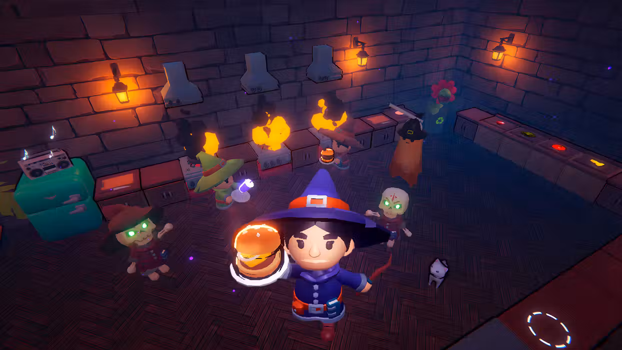 Deep within a spooky dungeon, witches have set aside their cauldrons in favor of sizzling grills and toasted buns. The world craves the finest enchanted burgers, and only you and your coven can deliver! But beware—meeting the quota is no easy feat. With orders piling up, ingredients flying, and time slipping away, teamwork is the only spell that will save you.