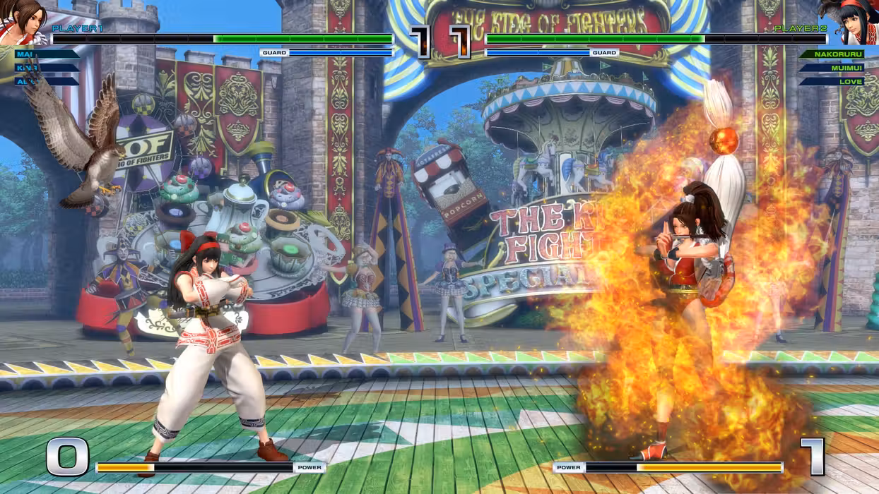 CLASSIC KYO / NIGHTMARE GEESE / ATHENA '98 Version / SHUN'EI: Kung-Fu Suit / NAKORURU: Kamuikotan Girls' School Uniform / CLASSIC IORI / MEITENKUN: Pajamas / KULA: Sundress / SYLVIE: Little Red Riding Hood / ANGEL: Diabla