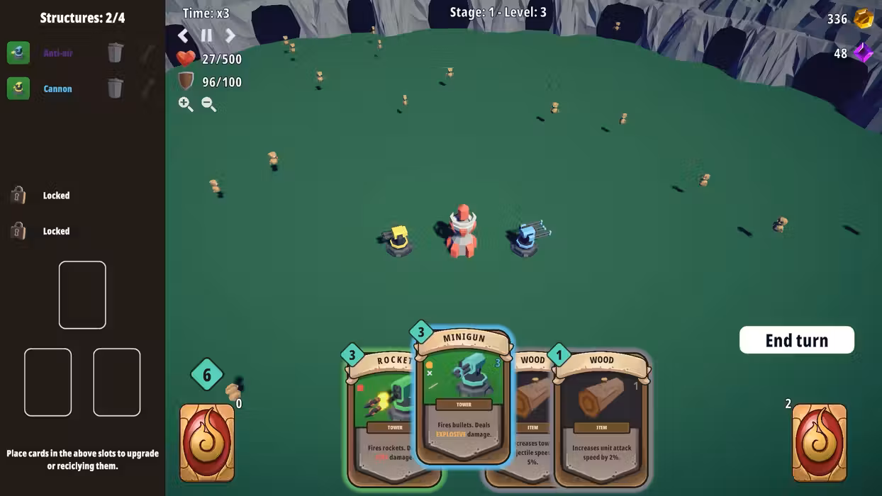 Cards and Towers is a run-based roguelike that blends dynamic deckbuilding with real-time tower defense. Build your deck, deploy your towers, and adapt your strategy as you face increasingly challenging waves. Each run is a new opportunity to discover powerful combos, climb the leaderboard, and prove your mastery.
