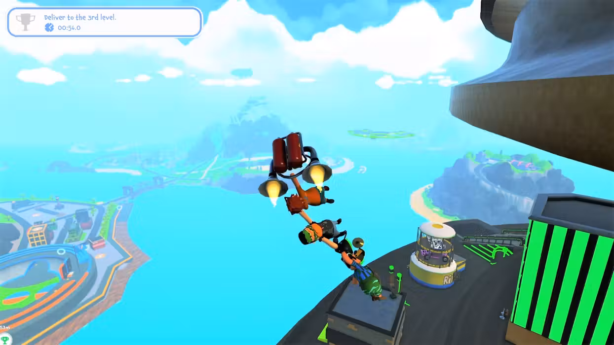 The game world is huge! Earn money through making deliveries to unlock new zones with new delivery routes, vehicles, and cosmetics. Ever do a delivery onto a moving blimp?