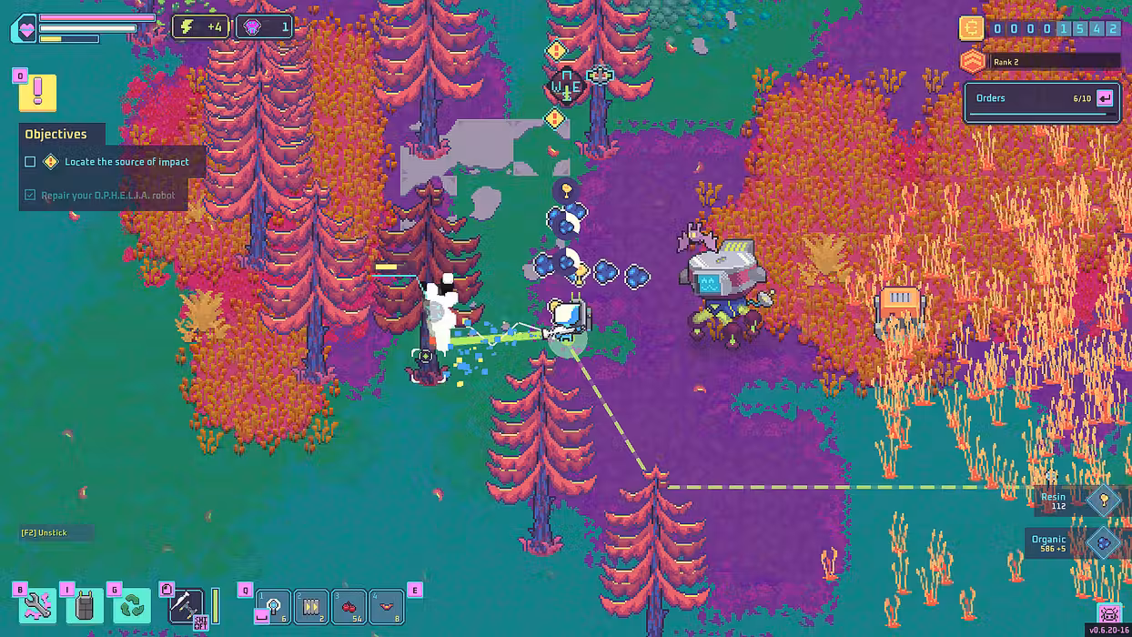 Not every species welcomes visitors. Hostile wildlife and territorial species won’t let you exploit their planet without a fight - have your loyal robot companion O.P.H.E.L.I.A and laser guns at hand!