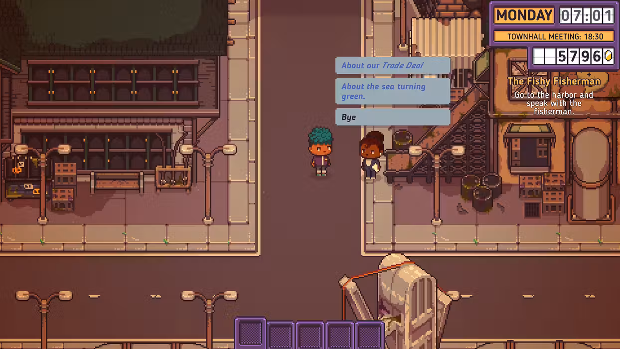 Your aunt has invited you to manage the local store, 'Discounty', in the run-down harbour town of Blomkest. But beware, not everyone wants you to succeed.