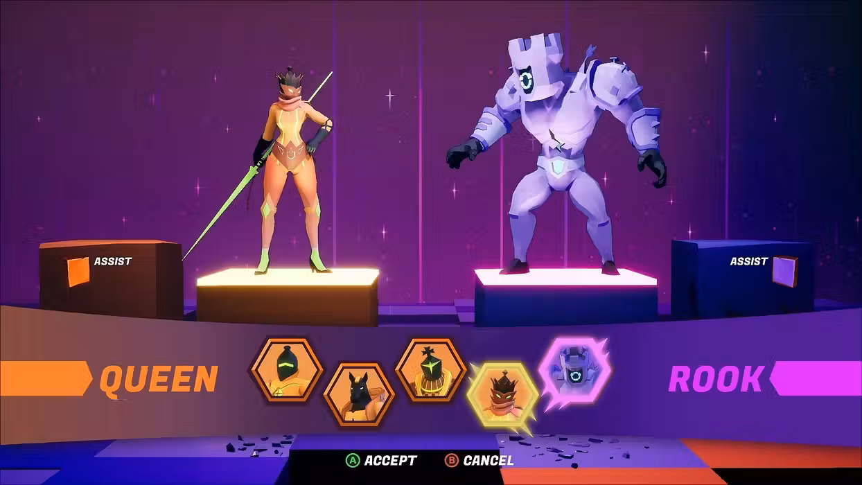 The Chess and fighting parts are intimately linked by design; once a piece attacks the opponent, a fight is engaged. The attacker and defender will be able to make use of tag-assist by other pieces in proximity, and the attacker will have an advantage by having their Ultimate ready to rip from the get-go.
