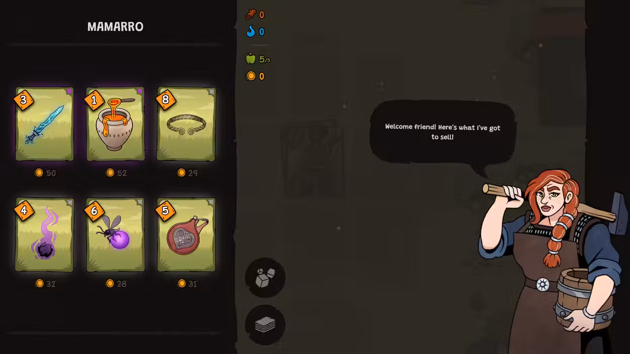 Between expeditions, return to your village and restore buildings to unlock upgrades for your items and spells.