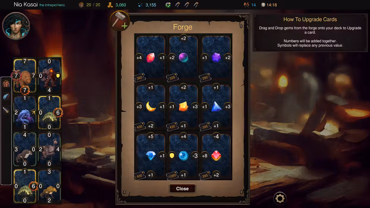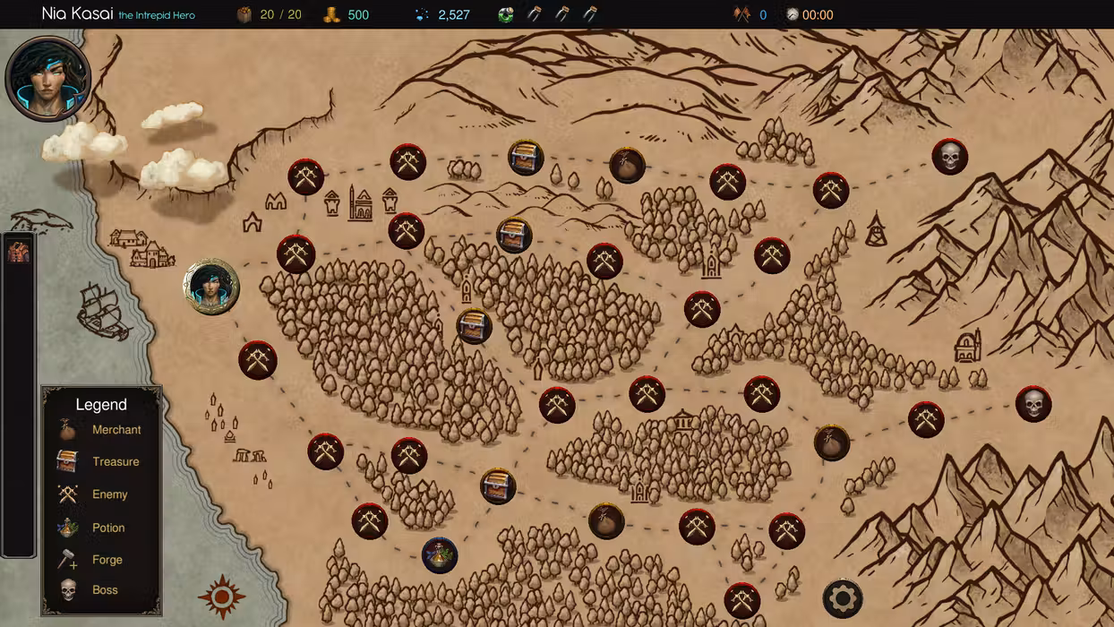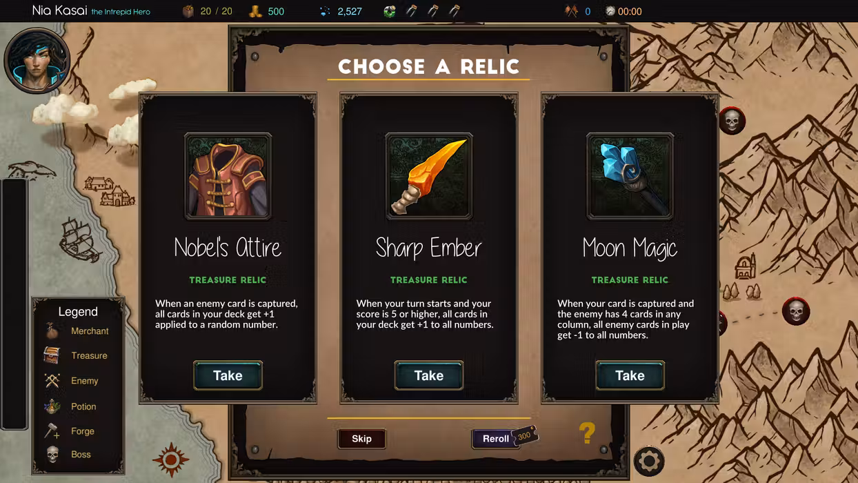 Traverse three distinct maps, facing increasingly challenging enemies. As you progress, collect shards to unlock permanent perks and new heroes, each offering unique abilities and playstyles. Enhance your deck by upgrading cards, discovering powerful relics, and utilizing potions for temporary boosts. Every decision matters in your quest to build the ultimate deck.