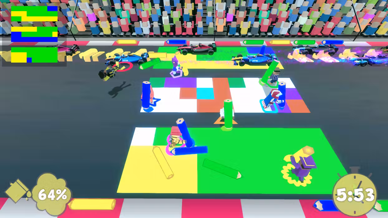 Of course, you can always go from accidentally stepping on each other’s toes to deliberately doing just that. The new and improved Versus Mode pits players in a race to become the next great painter, trying to complete the painting ahead of the opposing team. It’s the ultimate painting competition: Can you complete the paintings before the other team, navigating the unique challenges of each canvas, the pitfalls of team communication, and of course the pressure of the competition’s brushes…