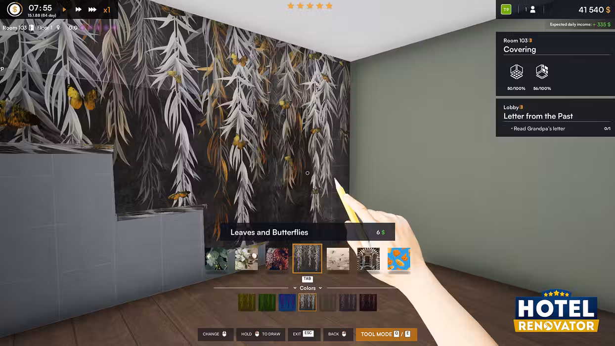 Express yourself and customize away! Modern, retro, cozy or even funky, enjoy endless possibilities! You'll be able to choose from more than 2000 designs of appliances, lights, curtains, rugs, painting, materials, and colors to decorate the hotel in your style.