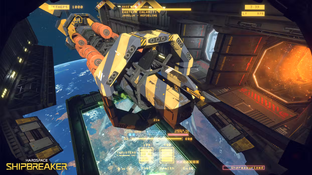 Across your career, you’ll have the privilege of paying your debt to us by purchasing salvaging rights to increasingly large and valuable ships. Cut them open and extract as much value as possible!