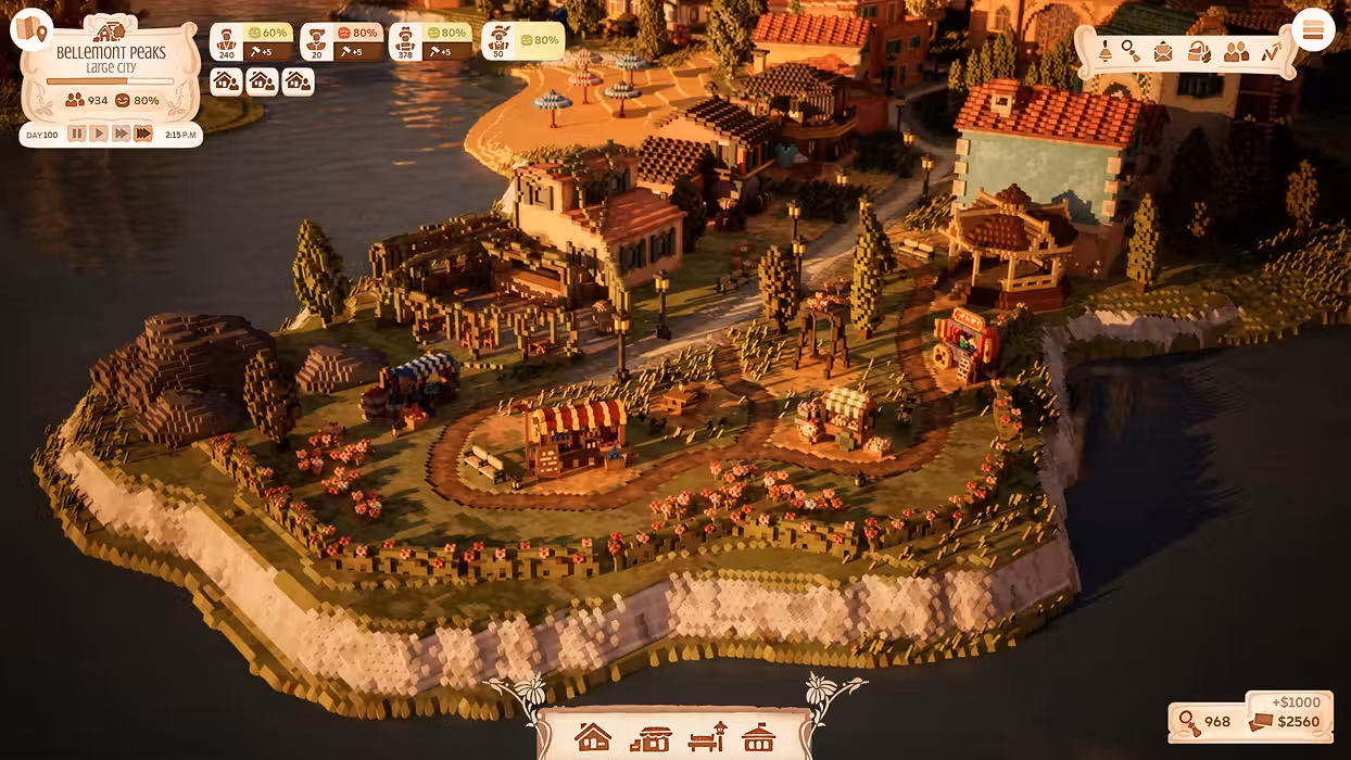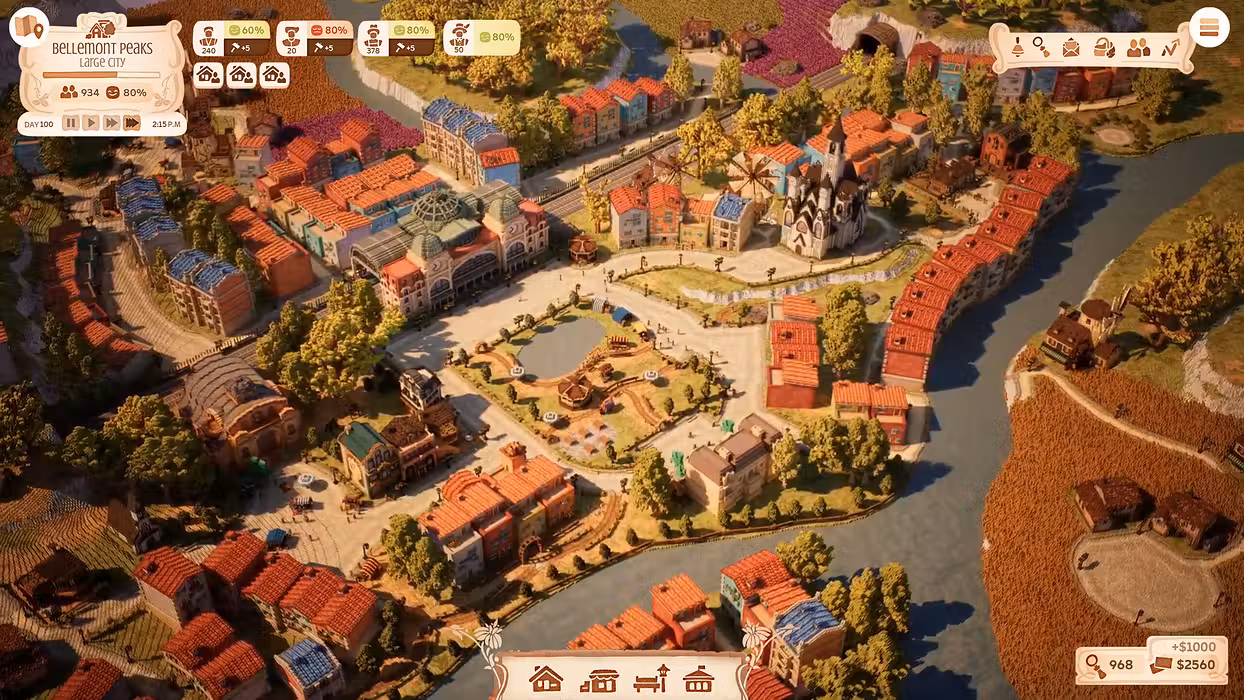 Truly grid-less building sets you free to lay out your town however you like. Plan out carefully ordered rows of houses and city districts, or grow outwards organically with residences, amenities, parks and plazas connected by winding streets and alleys.