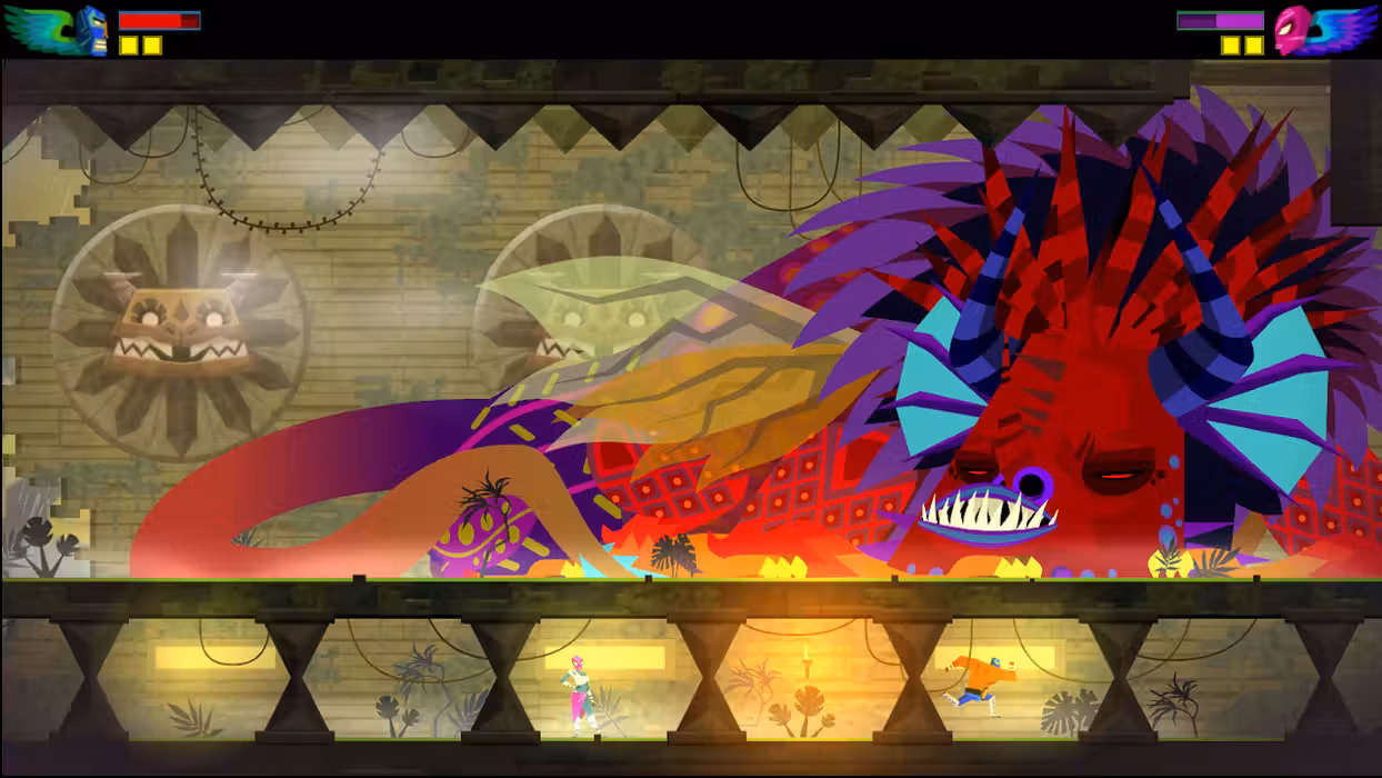 The Guacamelee! Original Soundtrack featuring music by Rom Di Prisco and Peter Chapman. 30 remastered high-resolution tracks, over 1 hour of music (MP3 320kbps) - PLUS 4 bonus remixes not heard in the game. The thumping, colourful soundtrack combines the guitars and trumpets of its Mexican-inspired world with driving electronic beats - the perfect music to suplex skeletons by.