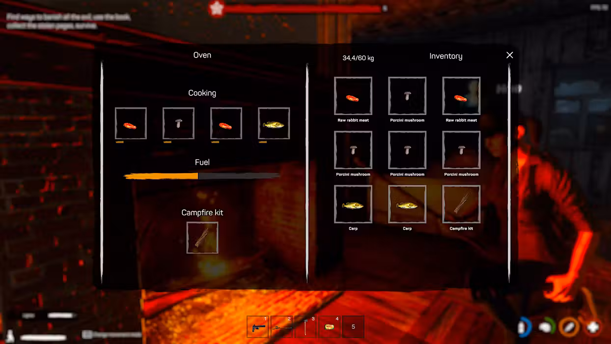 When you run out of food and there is no gas station or other place where you can find food nearby, catch and cook a carp, or hunt down and kill a wild animal to cook juicy meat over a fire, in an oven or in a cauldron. Also, don't forget about mushrooms and apples.