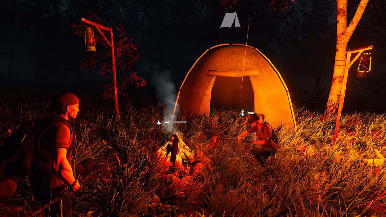 Having tools, such as an axe or a knife - you can extract various resources, but if you do not have tools - try to break sticks with your bare hands, but be careful - you can easily cut yourself, then you will need bandages. Obtained resources - you can use them to create various items, as well as building your own house or base, camp. In a team building a camp or a house is faster, when one player extracts resources, the second builds, and the third builds a fire and prepares food, so that after building a camp - you can start cooking a delicious dinner and replenish your strength before new adventures.