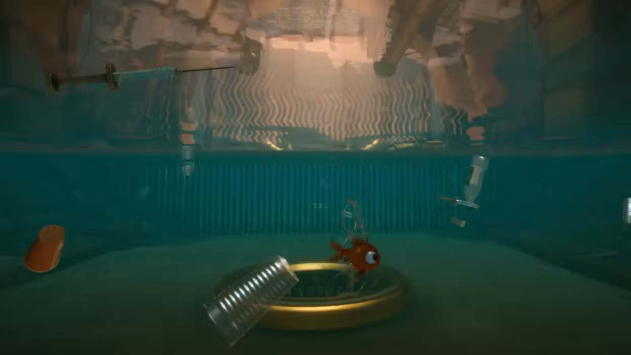Our four fin-tastic friends will be hitching rides in all manner of ad hoc water carriers including jars, mop buckets on wheels and the occasional pint glass. Cheers! Navigating in each make-shift aquatic vehicle poses its own unique challenge, but don’t worry, the relative freedom of open water is never too far away with inviting fountains, swimming pools and err, sewers full of hazardous materials to splash around in, before reaching the final goal – the shimmering, open ocean.