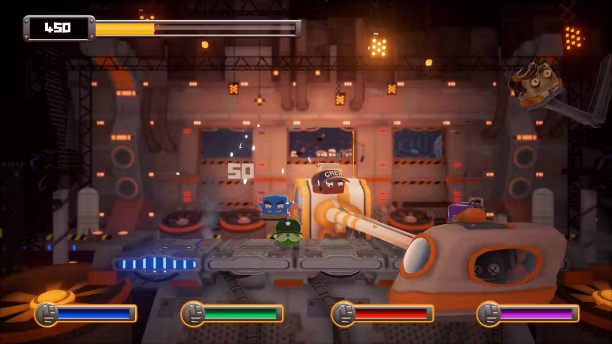 Cooperate as a team to get as much score as you can, then jump, punch, break, munch, explode, and crunch your teammates out the way to steal first place!