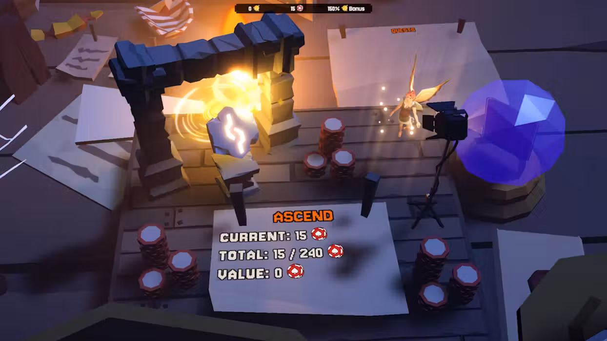 Make a deal with Mary the Fairy to start over in exchange for Poker Chips (poker chips? ...but this ain't even poker...?), use those chips to buy even more powerful upgrades.