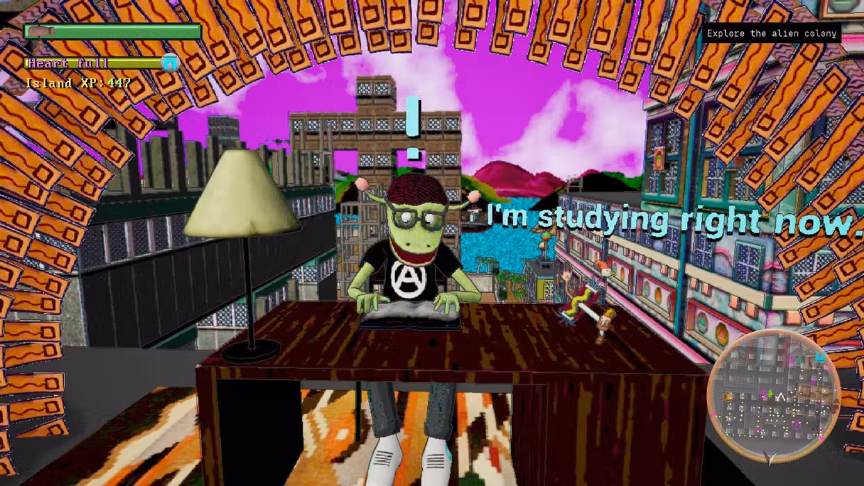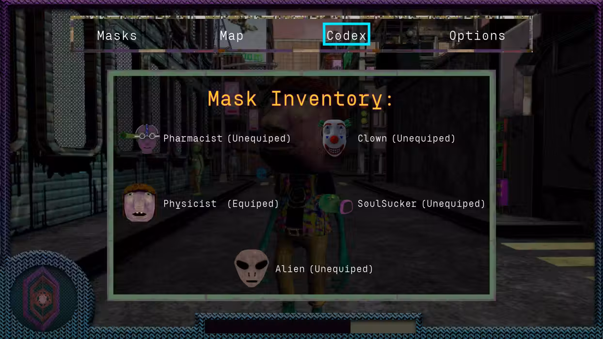 The world itself is the story. The Lavender Corporation, an evil group from the mainland, works with an alien civilization to control the island and everyone who lives on it. To fight back, you'll accept missions, meet contacts, and find masks with different abilities.