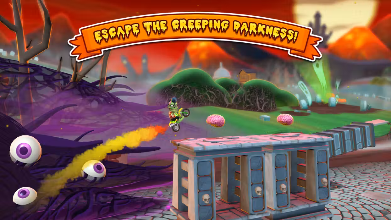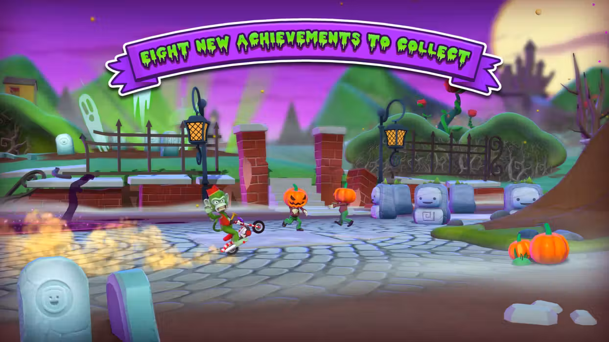 Hunt brains as Zombie, sabotage dark rituals as the Vampire Hunter, and escape the creeping darkness as Pumpkin Head! Claim skulls as the Rider, run the gauntlet as the Chimpanzombie and tame the dreaded Werebear! Each character is also playable in the original game, adding a little Halloween flavour to every thrill and spill!
