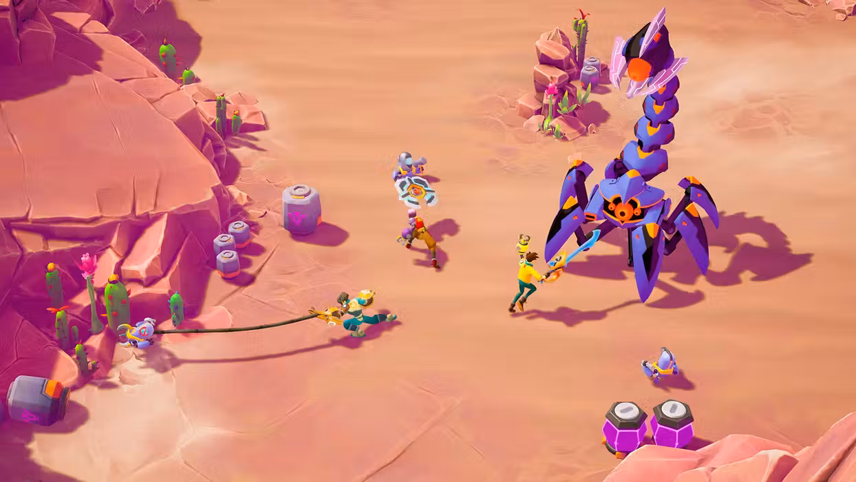 Take on a variety of hack-and-slash missions either solo or with up to 3 players. But wait… your Unibot pals want a piece of the action, too! Players can power up and recruit allied bots into the fight as companions, where they have their own powers, fighting styles, and combo attacks to send your foes to the scrap pile!