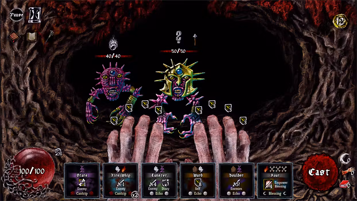 Every spell is built from elemental patterns cast directly with your fingers. Recipes can overlap and combine, sparking strategies that reward clever play and experimentation.