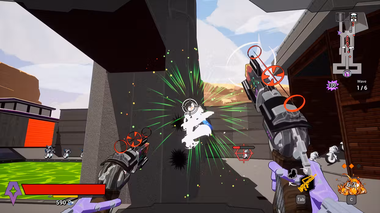 Act like it! It might be much for one man, but not for one robot. Don't worry about AI.VI: He comes from the good old days before planned obsolescence, when a little driver update didn’t hurt. This means there's no limit to how powerful AI.VI can get: push the limits, overclock your loadout, combining dozens of weapons and buildings with randomized upgrades to reach truly ridiculous heights of power!