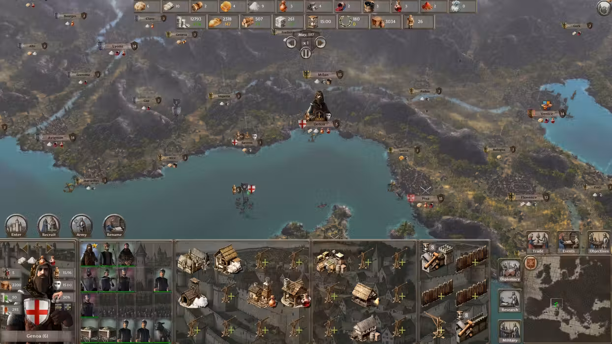Trade is the key to the city's survival. Establish new trading outposts across the known world to gain access to twelve precious commodities, from wool and linen to spices and silk. With every trade route the opportunities expand, bringing with it more wealth and prominence. Each route also makes the city a more attractive target for rival powers, demanding a strategic approach and navigating the treacherous world of politics and warfare of medieval times.
