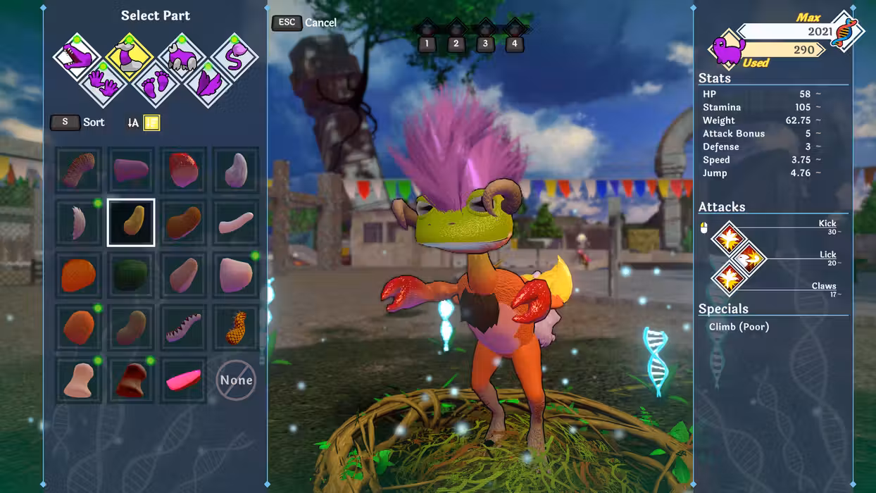 Defeat creatures to collect their DNA and unlock new body parts. Reshape yourself and experiment with combinations to build the ultimate form. But remember that balance is key: a strong torso and powerful head might win fights, but what good is strength if you can’t catch your prey? With 7 part slots and over 40 creatures to discover, you’ll have over 10 million possible combinations to play with.