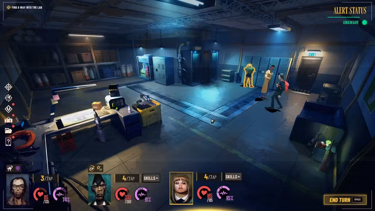 Experience a unique hybrid of escape room style puzzles, turn-based combat, and RPG mechanics tied together with a dark and cinematic storyline. Delve into the dark underbelly of near-future London Once bustling and full of life, the city of London is in a dark and dismal state. Unemployment and homelessness are at an all-time high. Ethical boundaries are being stretched to their limit and corrupt billionaire, Kenny Hogan, is up to no good. It’s up to ragtag band of criminals Frank, Sally, and Gavin, to put a wrench in Kenny Hogan’s plans and bring him to his knees. But this is no simple job and there’ll be a smattering of obstacles they’ll have to face along the way… Lose yourself in a dark and dystopian story Immerse yourself in a gritty and graphic world with a storyline narrated by fully voice-acted characters. Experience stunningly hand-drawn environments, 2D cinematics and comic book inspired sequences as well as cliff hangers that will keep you on your toes. Puzzles that will get you scratching your noggin Explore each room and solve a combination of observation, deduction, and inventory puzzles to progress on your mission. Hunt for clues, hack terminals, bust down a door (or two) and test your wits in mini game challenges unique to each “hero”. Stylish turn-based combat inspired by comic books Face off against your opponents in stylish and cinematic RPG style battles. Each team member possesses their own unique set of skills as well as their own strengths and weaknesses. Plan your moves strategically, master winning combos and kick your enemies to the curb. Keep your composure and try not to sweat Battle your own stress levels as well as enemies! Disturbing and pressured situations will wear down your characters’ composure causing them to act impulsively. Maintain your composure with consumables and leadership abilities. Lose your mind, lose the mission! A modern twist on point-and-click games Sunday Gold takes the traditional elements of a point-and-click game and mixes them with fierce RPG combat and a gritty storyline.