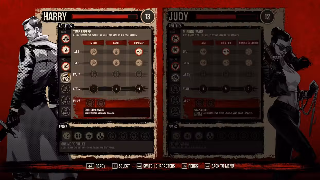 Two heroes working together will slay enemies twice as fast! Switch freely between Harry and Judy, the Angel and the Demon, at any moment in solo mode, or grab a friend and work together in co-op for even greater bloodshed!